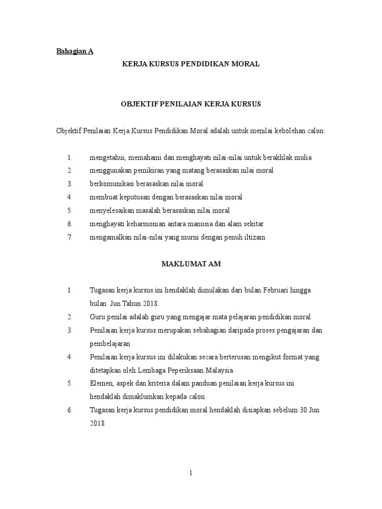 Contoh Kerja Kursus Pendidikan Moral Penghargaan Folio Moral Kerja Kursus Pendidikan Moral Objektif Penilaian Kerja Kursus Chobitszealotxs